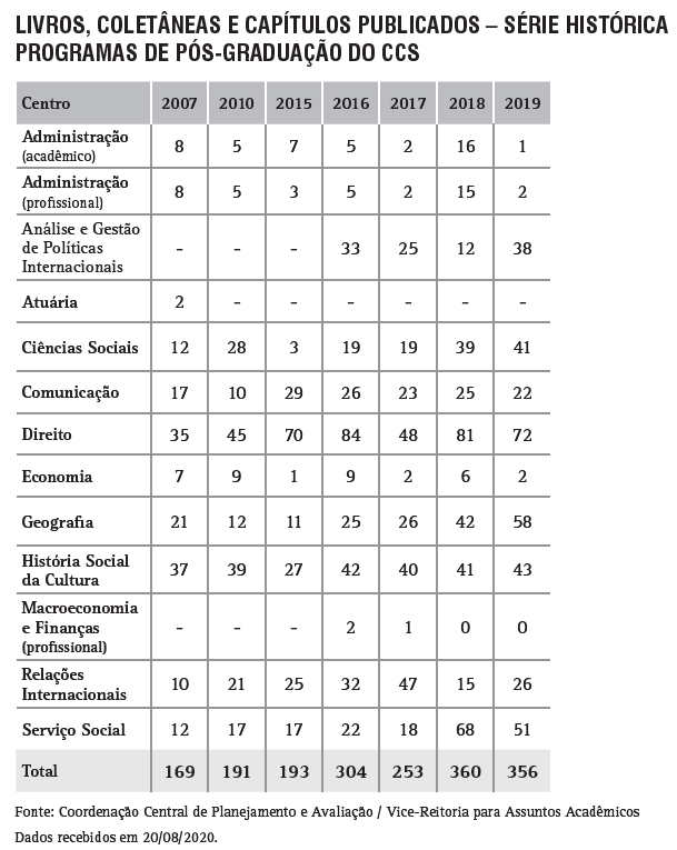Livros, Coletâneas e Capítulos publicados pelos Programas de Pós-Graduação do CCS