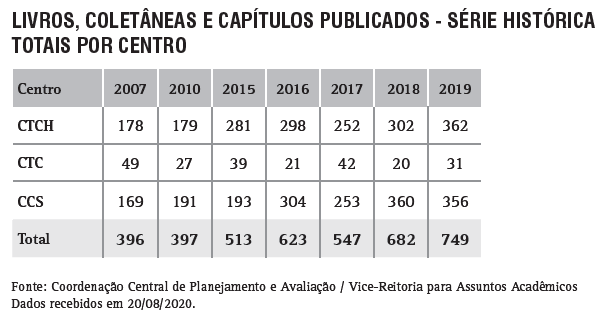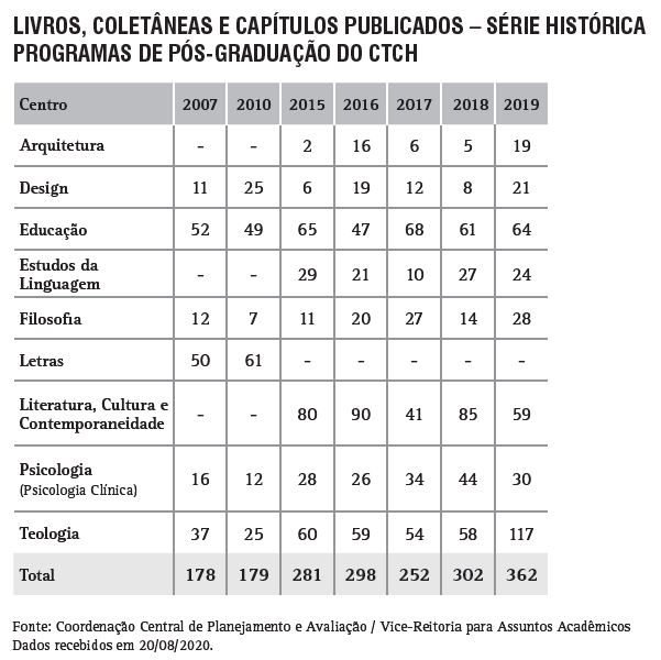 Livros, Coletâneas e Capítulos publicados - Programas de Pós-Graduação do CTCH - série histórica