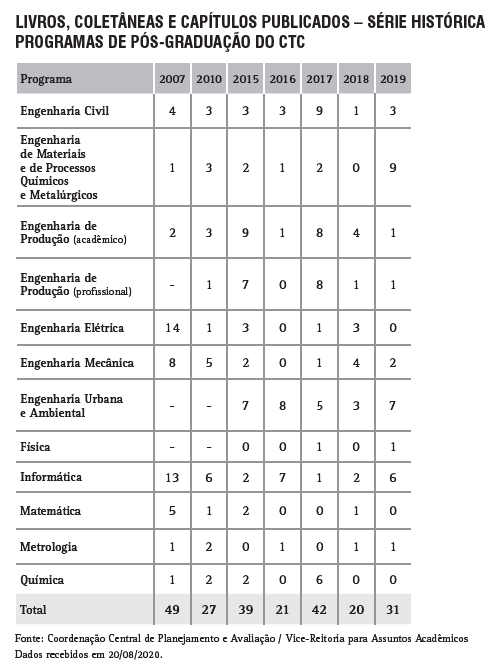 Livros, Coletâneas e Capítulos publicados pelos Programas de Pós-Graduação do CTC