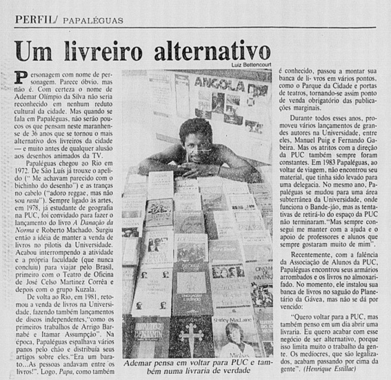 Matéria sobre o livreiro Papaléguas, Jornal do Brasil, 19/02/1988, p.2.