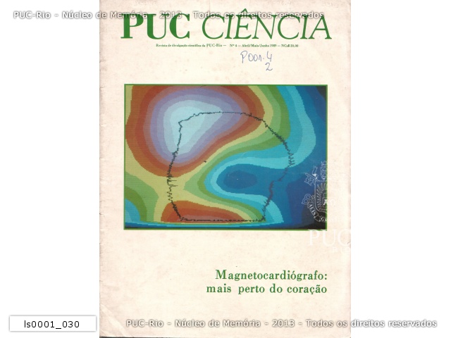 Capa da quarta edição da revista PUC CIÊNCIA referente aos meses de Abril, Maio e Junho, era vendida pelo preço de vinte cruzados novos. |