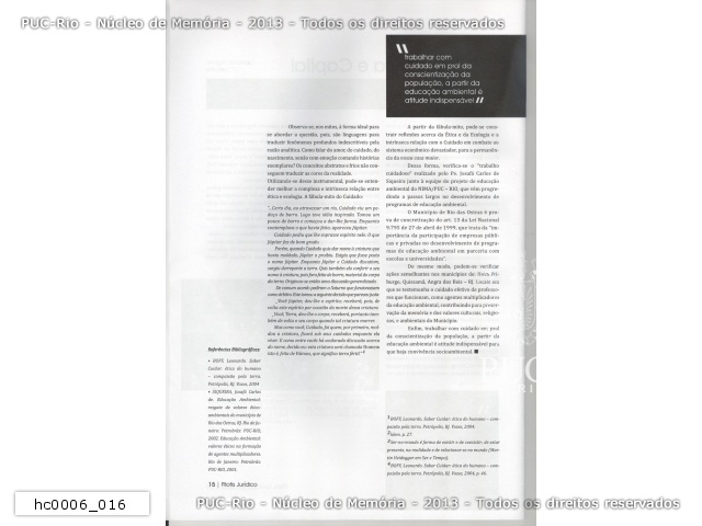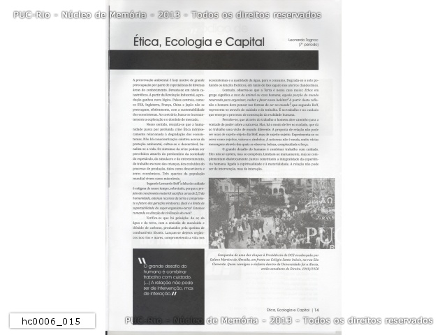 Artigo sobre preservação ambiental que discute como o homem moderno encara a produção desde a revolução industral e o os males que isso pode causar para a vida no planeta. Edição de Novembro de 2010, ano XV do jornal 'O Pilotís Jurídico'. |