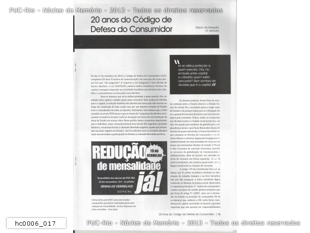Artigo sobre os vinte anos do Código de Defesa do Consumidor (CDC)na edição de Novembro de 2010, ano XV do jornal 'O Pilotís Jurídico'. |