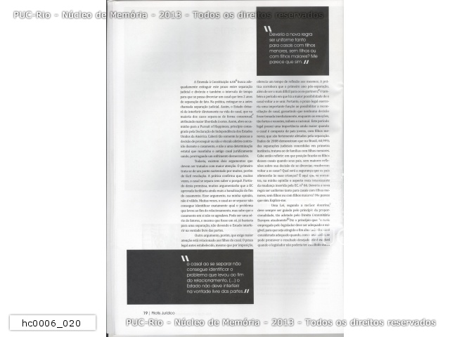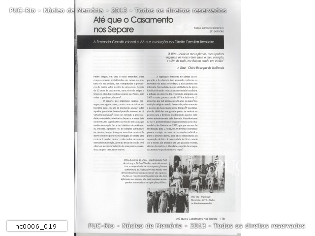 Artigo sobre a separação judicial e a evolução da lei do divórcio de acordo com os costumes da nossa sociedade. Edição de Novembro de 2010, ano XV do jornal 'O Pilotís Jurídico'. |