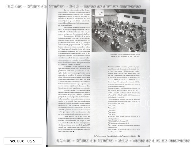 Artigo que intenciona explicar o princípio da proporcionalidade e como ele é aplicado na Suprema Corte Brasileira. Edição de Novembro de 2010, ano XV do jornal 'O Pilotís Jurídico'. |
