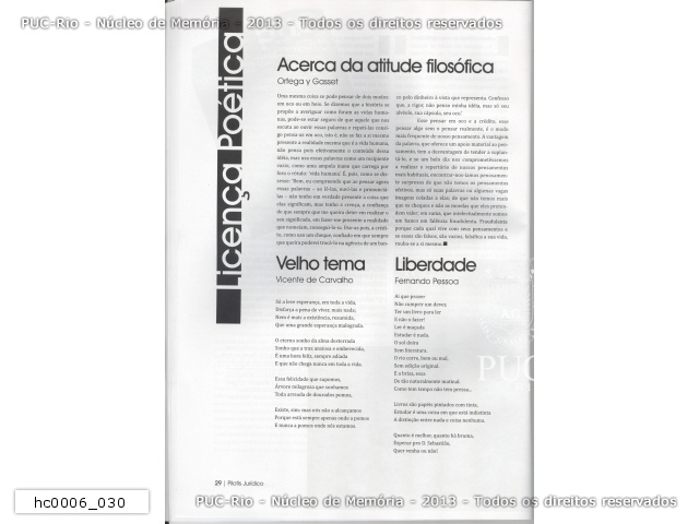 Seção com contos, crônicas e poesias da edição de Novembro de 2010, ano XV do jornal 'O Pilotís Jurídico'. |