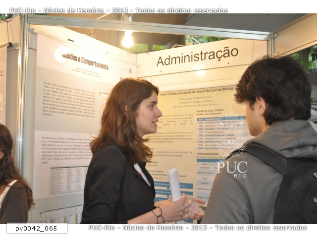 Apresentações dos Bolsistas de Iniciação Científica do CCS no PIBIC 2011.2. 'Internacionalização da Moda: Estudo de caso da Osklen' - Elisa de Rooij Mansur; orientação da Professora Angela da Rocha |