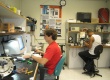 A Profa. Marlene Sabino Pontes em frente a terminais de computadores. |