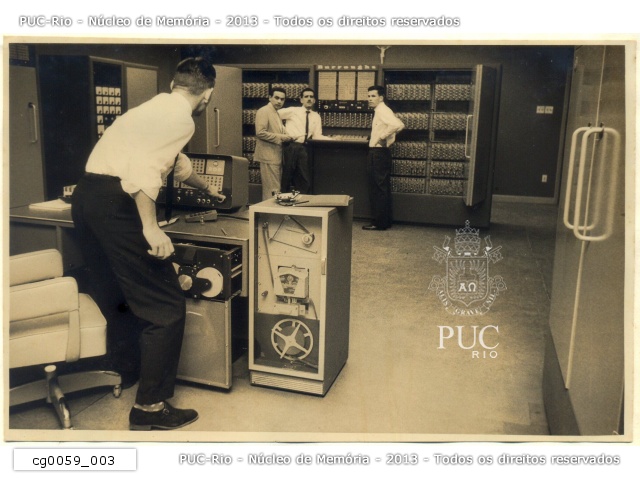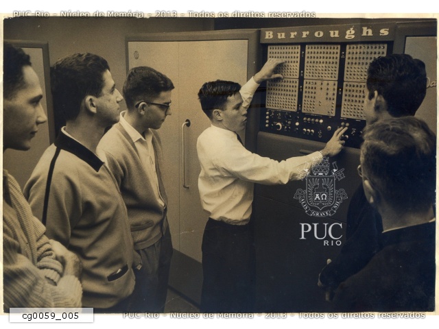 Georg Herz, engenheiro da Burroughs, apresenta o computador Burroughs 205, o primeiro computador da PUC-Rio, conhecido como cérebro eletrônico e com memória de cerca de 16Kb.