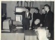 O computador Burroughs 205, primeiro computador da PUC-Rio, cercado por pessoas que observam a máquina de escrever/impressora no dia da inauguração do Centro de Processamento de Dados. |