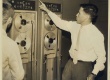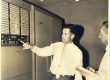 Georg Herz, engenheiro da Burroughs, explica as operações do computador Burroughs 205, o primeiro computador da PUC-Rio, conhecido como cérebro eletrônico e com memória de cerca de 16Kb. |