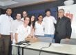 Padre Alfredo Sampaio posa com funcionários durante evento |