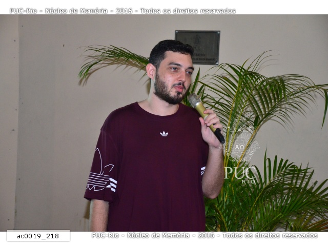 ac0019_218 | 7/5/2019 | O aluno do curso de engenharia Alberto no Lançamento da Plataforma Digital Saber Solidário da Pastoral Universitária, para incentivar a troca de trabalhos voluntários na comunidade PUC-Rio. |