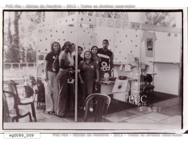 eg0086_009 | 2001 | Equipe no estande do FESP - Fundo Emergencial de Solidariedade na FEVUC. |