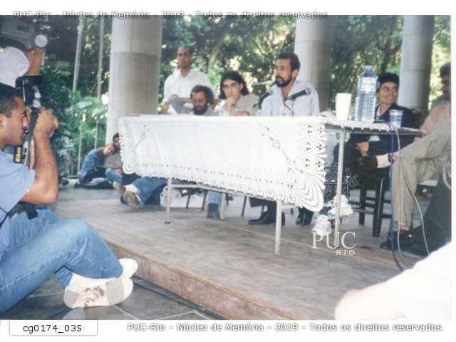 Mesa de debates com integrantes do Movimento dos Sem Terra, José Rainha e Deolinda, organizado pelo Diretório Central de Estudantes da PUC-Rio com o apoio da Vice-Reitoria Comunitária. |