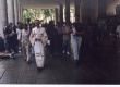 Visita da imagem de Nossa Senhora de Aparecida, que estava percorrendo as paróquias do Rio de Janeiro em preparação ao II Encontro Mundial do Papa com as Famílias. Ela ficaria aquele dia inteiro na capela da PUC-Rio. Chegada à entrada do Ed. da Amizade. |