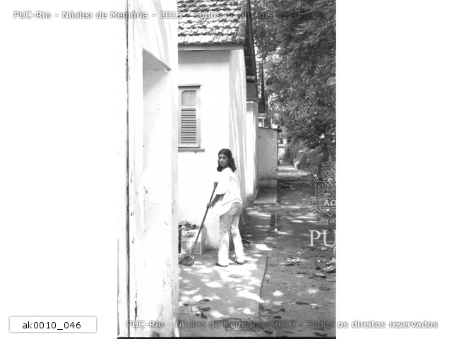 Aluna varre o chão nos fundos da Vila dos Diretórios. |