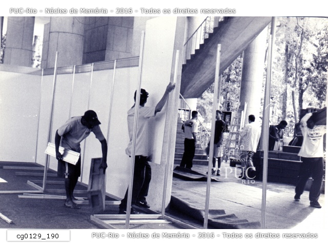 cg0129_190 | 20/8/1999 | Funcionários montam os estandes da III Mostra PUC. |