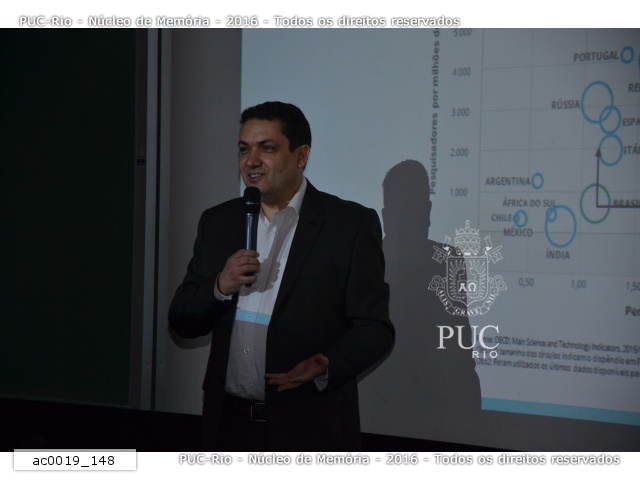 O Reitor da PUC-Rio padre Josafá na palestra do Presidente da Capes, Prof. Anderson Ribeiro Correia, sobre Políticas da Capes. |