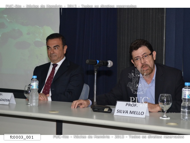 fc0003_001 | 26/11/2012 | Palestrantes Carlos Ghosn (Nissan) e prof. Silva Mello (Decano do CTC). |