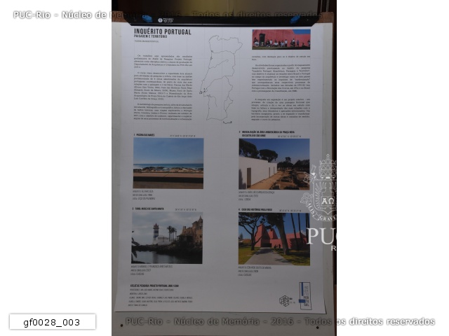 gf0028_003 | 23/11/2017 | Poster da pesquisa "Inquérito Portugal: Arquitetura, Paisagem e Território”, sobre a produção arquitetônica contemporânea em Portugal, realizada pelos professores Ana Luiza Nobre, Antonio Sena e Pedro Évora. |