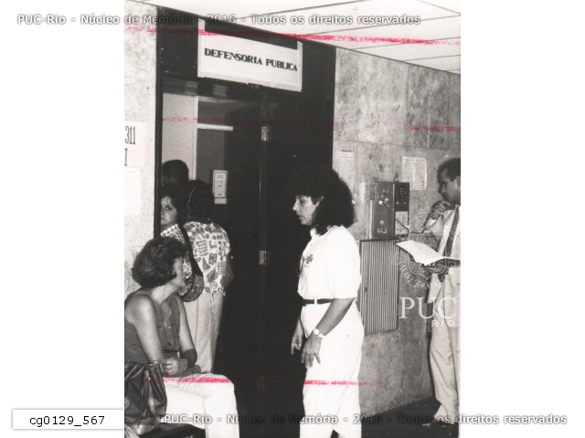 cg0129_567 | 2/7/1992 | Fotografia publicada no Jornal da PUC em matéria sobre a Defensoria Pública do Estado do Rio de Janeiro que, considerada a mais preparada do mundo pela carta da ONU de 1989, estava em crise. Apesar da situação instável, a Defensoria recebia em seu quadro de estagiários de 60 a 70 alunos do curso de Ciências Jurídicas da PUC-Rio por ano. |