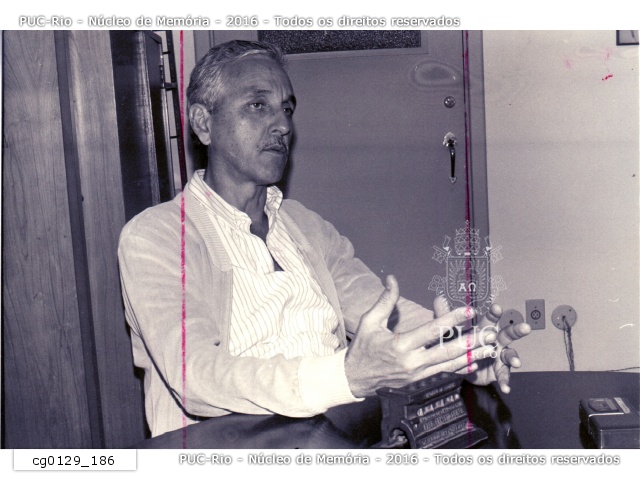 cg0129_186 | 7/5/1991 | Professor José Carlos D'Abreu, à época diretor do DCMM, dando entrevista sobre a instalação de um moderno microscópio eletrônico alemão em seu Departamento. |