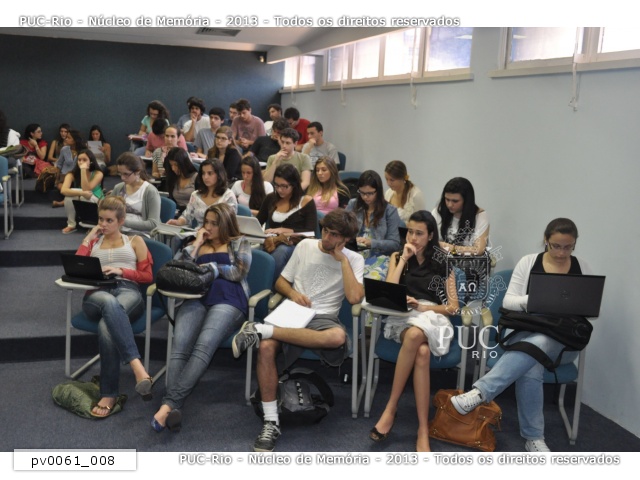 pv0061_006 | 21/9/2011 | Aula magna no Departamento de Direito da PUC-Rio. A palestra 'A Rede de Legalidade', proferida Por Paulo Markun, foi acompanhada por vários professores e alunos. O evento também inaugurou o Ciclo de Debates sobre os 50 anos da Rede |