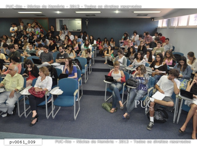 pv0061_007 | 21/9/2011 | O auditório lotado assite à aula magna oferecida por Paulo Markun ao Departamento de Direito da PUC-Rio. Sua palestra, 'A Rede de Legalidade', inaugurou o Ciclo de Debates sobre os 50 anos da Rede. |