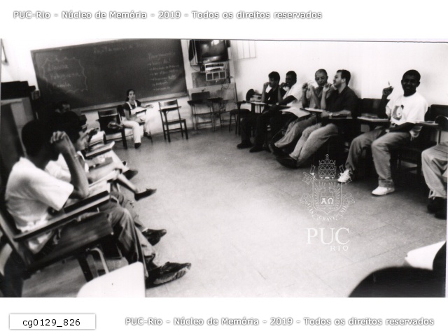 cg0129_826 | 3/2000 | Alunos do Telecurso 2000 da Fundação Roberto Marinho. A iniciativa era um supletivo para funcionários da PUC-Rio e fazia parte do Projeto Raízes Comunitárias. Também tinha incentivo do Departamento de Serviço Social. |