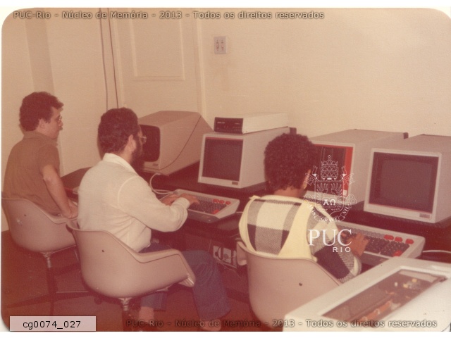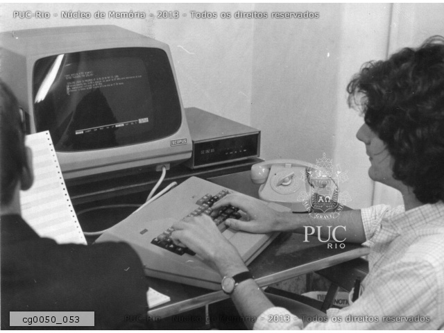 cg0048_003 | 2/10/1981 | A equipe ativando o programa do novo sistema de contagem de créditos desenvolvido no LOS - Laboratório de Otimização de Sistemas. |