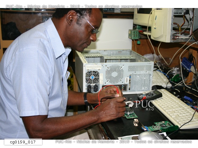 cg0159_017 | 7/10/2009 | Funcionário Isnarde Antonio Ernesto (ELE) em seu ambiente de trabalho. |