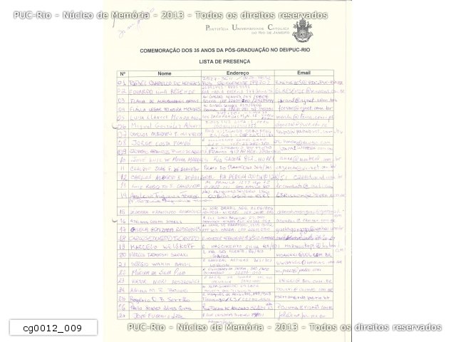 Lista de convidados ao evento comemorativo dos 35 anos do Programa de pós-graduação em Engenharia de Produção. |