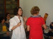 Professoras Eunícia Fernandes e Flavia Eyler durante a confraternização. |