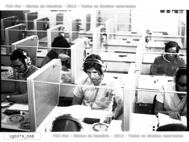 Deficientes visuais do Instituto Benjamin Constant, prestando vestibular no Laboratório de Línguas. |