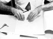 Deficiente visual do Instituto Benjamin Constant, prestando vestibular no Laboratório de Línguas. Faz leitura de texto em Braille. |