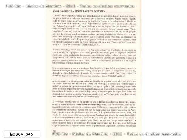 ls0004_045 | 11/1988 | Continuação do texto da professora Letícia M. Sicúro Corrêa (LET) sobre a pesquisa em psicolinguística. |
