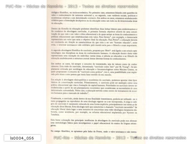 ls0004_057 | 11/1988 | Continuação do texto da profa. Solange Coelho Vereza (LET) no qual faz um estudo de currículo e constata a pouca eficácia do ensino de línguas. |