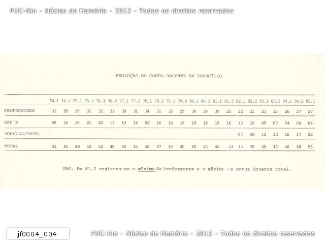 | Tabelas com dados estatísticos do Departamento de Matemática da PUC-Rio até 1985 - jf0004_004 |