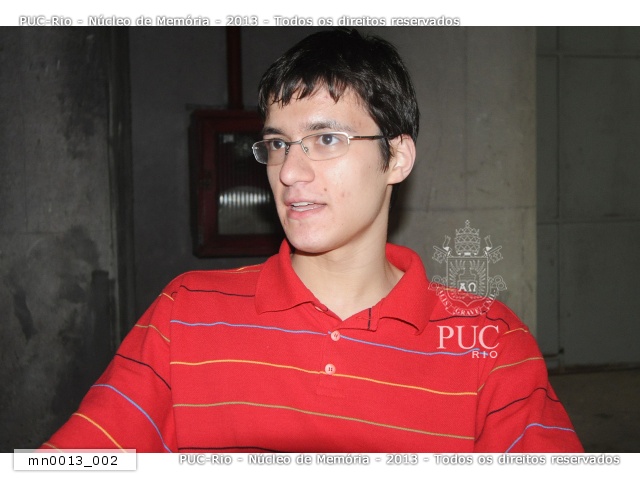 mn0013_003 | 15/9/2011 | Em entrevista concedida ao Jornal da PUC, o aluno de graduação em Matemática Matheus Secco, de 18 anos, que participou das Olimpíadas de Matemática em 2011 e foi premiado. |