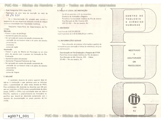 eg0071_001 | 1986 | Folder com informações sobre o Mestrado e Doutorado em Psicologia. |