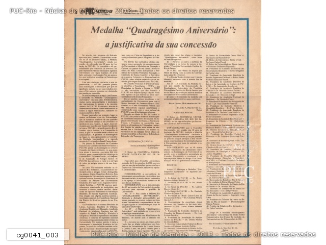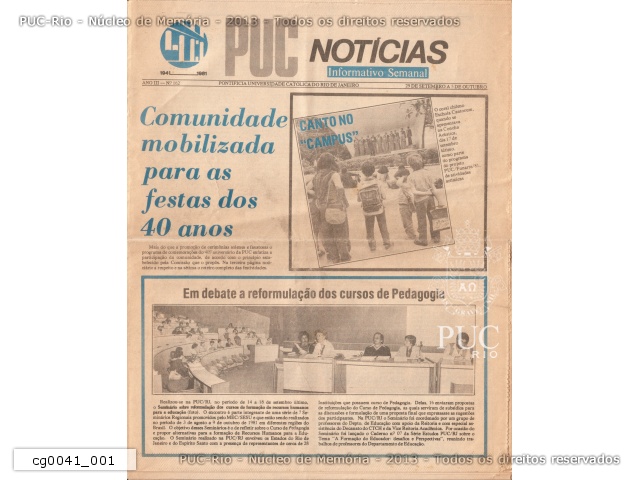 | PUC Notícias - ano III, no. 162, 29 de setembro a 5 de outubro de 1981 - 40 anos da PUC-Rio - cg0041_001 |