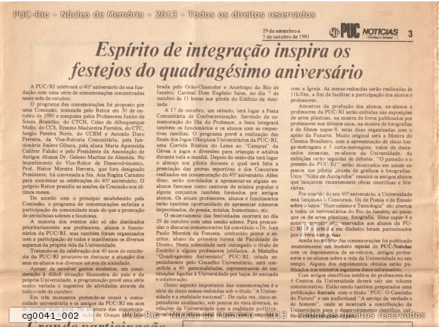 | PUC Notícias - ano III, no. 162, 29 de setembro a 5 de outubro de 1981 - 40 anos da PUC-Rio - cg0041_003 |