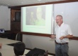 Professor homenageado com discursos e apresentações de fotos no Decacato do CTC. |