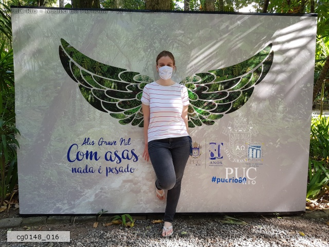 cg0148_016 | 3/2021 | A ex-aluna Daphne Schneider Cukierman, recém-doutora em Química pela PUC-Rio, posa em frente às asas localizadas no bosque da Universidade. Ela atua no Laboratório de Síntese Orgânica e Química de Coordenação Aplicada a Sistemas Biológicos (LABSO-Bio) da PUC-Rio, e tornou-se a doutora mais jovem do Brasil em todas as áreas de conhecimento. Daphne defendeu a tese com 26 anos, seis meses e dez dias e foi reconhecida pela plataforma de recordes Rank Brasil. Graças a seu desempenho acadêmico, Daphne pôde seguir da graduação direto para o doutorado ao passar em primeiro lugar no processo seletivo. Sua pesquisa na pós-graduação, sob a orientação do Prof. Nicolás A. Rey, teve como assunto principal a doença de Parkinson e outras doenças neurodegenerativas, em pesquisa sobre substâncias que podem vir a ser importantes no tratamento dessas patologias. |