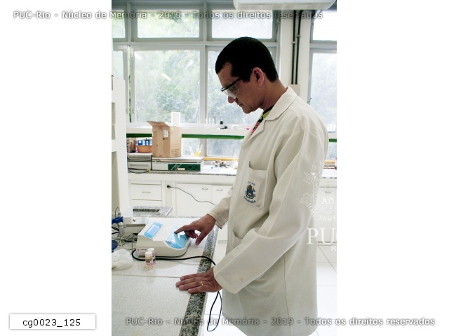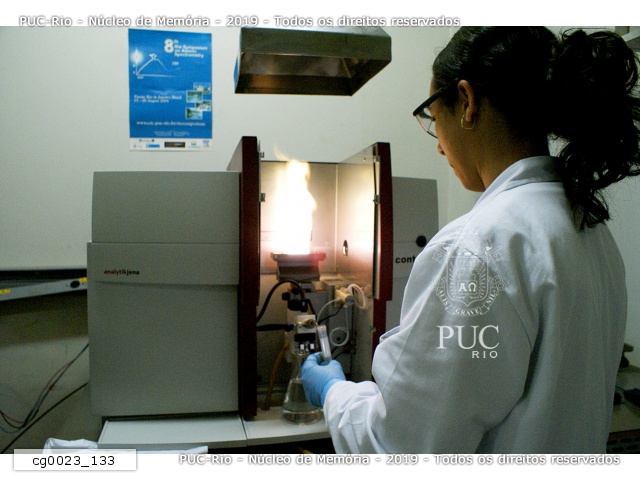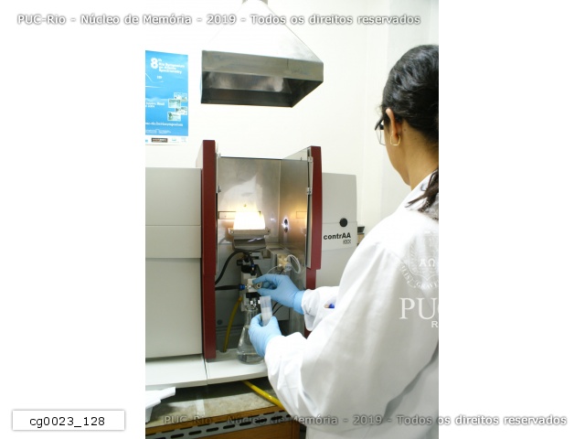 Pessoa opera equipamento em laboratório. Equipamento Analytik Jena ContrAA 300. |