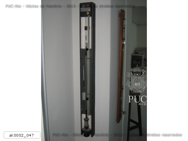 Instrumento de medição com a identificação "IQUC 60" (Instituto de Química da Universidade Católica, 1960). Wilh. Lambrecht KG Göttingen. Termômetro e/ou barômetro. |