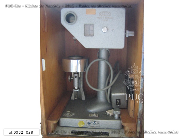Equipamento não identificado. Kruss - Made in Germany. Com placa de patrimônio da PUC-Rio e outra com texto em alemão. |
