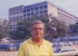 jf0018_004 | 1986 circa | Professor Klaus Paul Wagener, professor-visitante do Departamento de Química, na área cercada onde havia tanques para a pesquisa Maricultura em Terra. |