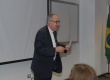 O prof. Osvaldo Novais de Oliveira Junior (USP) discutiu as novas abordagens de aprendizado de máquina e processamento de línguas naturais para o design de novos materiais e novas propriedades. |